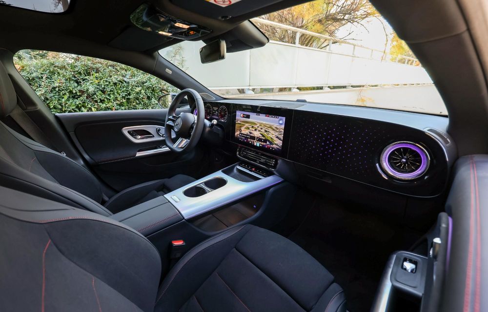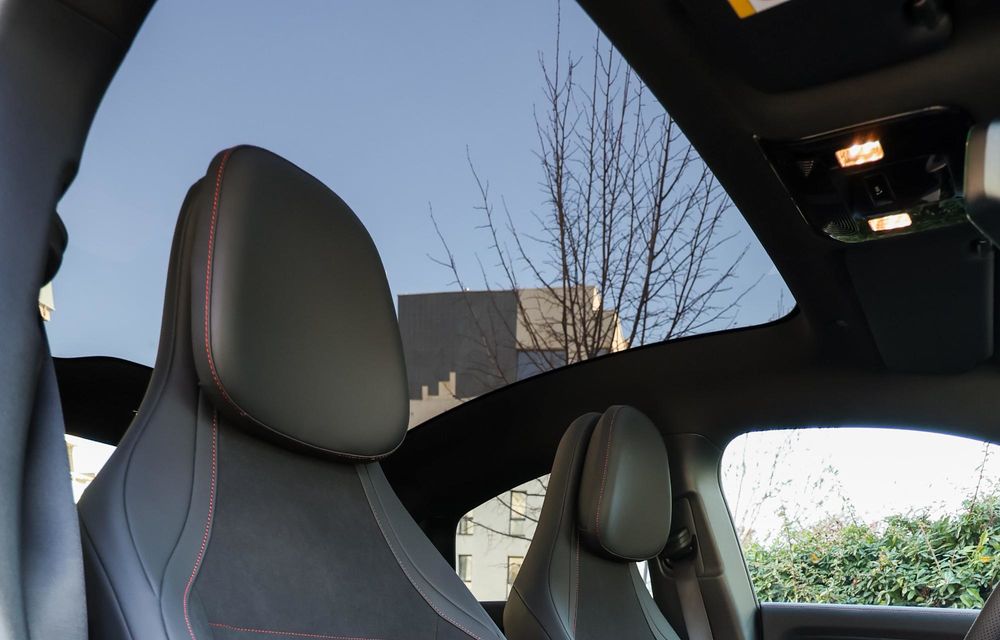 Trebuie să menționăm și plafonul panoramic uriaș. De fapt, noul CLA are cel mai mare plafon panoramic instalat vreodată pe un Mercedes-Benz.