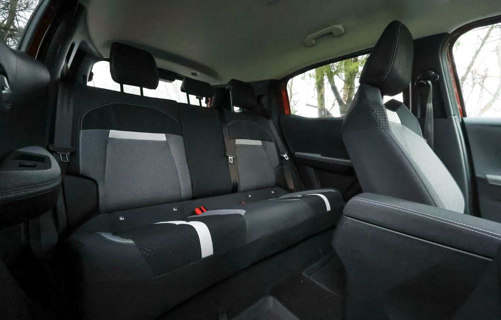 În spate, 2 adulți pot călători confortabil, dar al treilea ar sta destul de înghesuit. Din păcate, la Frontera Electric lipsește un element important comparativ cu fratele termic.