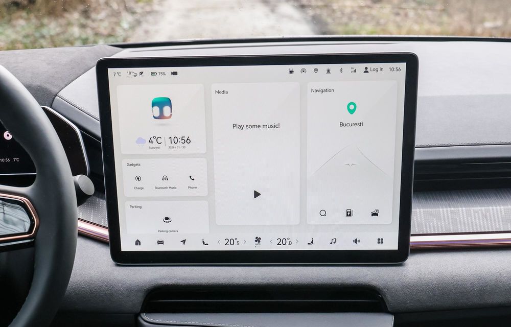 Vrei să modifici poziția volanului? O faci din sistemul multimedia. Vrei să reglezi oglinzile laterale? Sistemul multimedia este cel mai bun prieten al tău. Mai ții minte ce spuneam despre Geely și Volvo? Butoane și zone tactile regăsești și pe volan. Așa cum te-ai aștepta, nu sunt deloc intuitive și sunt greu de utilizat atunci când conduci.