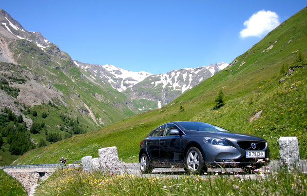 După ce te îndrepţi spre munţi şi începi să urci uşor printre sate şi orăşele austriece care mustesc de verde crud, plăteşti 33 de euro pentru a putea să treci munţii. Apoi ajungi în rai. O şosea care şerpuieşte spre 2700 de metri şi care este flancată în stânga şi dreapta de munţi care ajung la 4000 de metri altitudine. Peisajele excepţionale şi un asfalt impecabil au fost dublate de temperatura perfectă - undeva pe la 17 grade - şi de un cer perfect senin, astfel că V40 s-a ales cu câteva zeci de fotografii de colecţie. Apropo de asta, plecăciuni austriecilor care au decis să inventeze alveole şi parcări din 300 în 300 de metri. Nu eşti obligat, astfel, să te înghesui în trei-patru zone în care oprirea este permisă, iar şedinţa foto poate fi realizată fără probleme şi fără a fi deranjat de nimeni.
