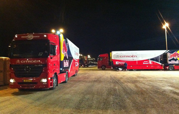 După Raliul Portugaliei, maşinile de WRC au fost transportate în Iordania pe calea aerului, în timp ce echipamentele au luat drumul Israelului prin Marea Mediterană. Vaporul a avut însă defecţiuni la unul dintre motoare, iar o furtună ulterioară l-a împiedicat să acosteze la Haifa până miercuri după-amiaza, iar camioanele cu echipamente au ajuns în cele din urmă în Iordania în noaptea trecută.