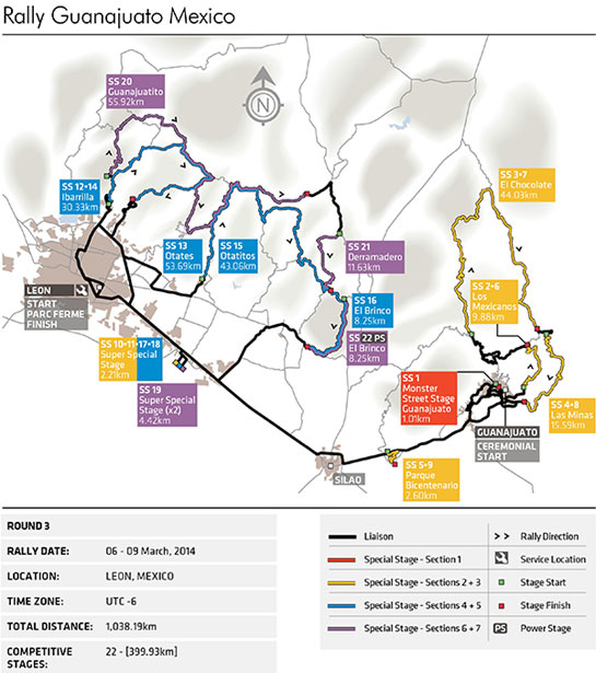 Ediţia din acest an a Raliului Mexicului iese în evidenţă prin traseul de 399 de kilometri în regim cronometrat, cu circa 100 de kilometri mai mare decât etapele tradiţionale. Cea mai lungă proba specială poartă numele Guanajuatito şi are o lungime de 55.92 kilometri, fiind de altfel şi cea mai lungă din istoria de 10 ani a competiţiei.