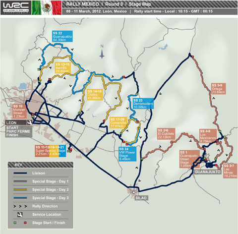 Parcul de service va rămâne însă la Leon, iar etapa va include două dintre cele mai lungi probe speciale din calendarul competiţional: Guanajuatito va avea 54.3 km, în timp ce Otates va măsura "doar"41.88 km.